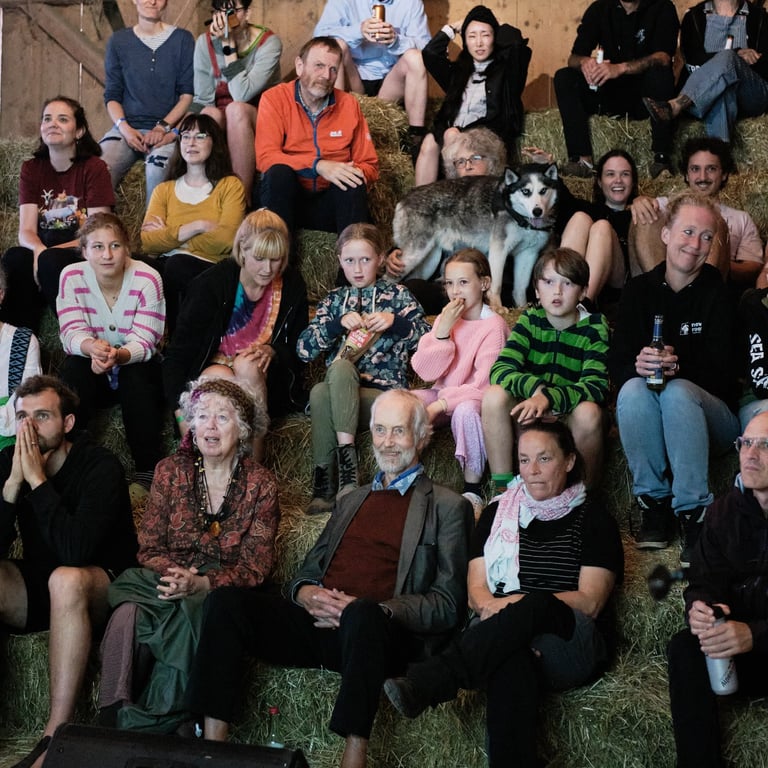 Während dem arten- und sparten-übergreifenden Festival-Wochenende findet an verschiedensten Orten auf dem Hof Kunst statt – mit, für oder neben den anwesenden Tieren, zwischen den Obstbäumen oder im Permakultur-Gemüsegarten.