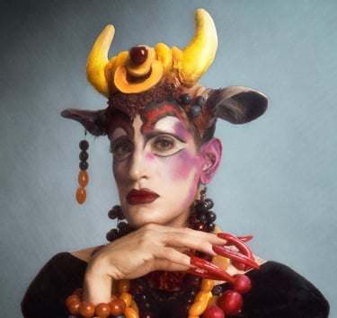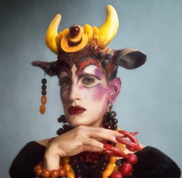 «Vogue Végétale» presents a series of fashion photographs featuring clothing made from lettuce, radishes, grapes and other edible fruits and vegetables. This series was produced by Soya the Cow together with Chilean photographer Tomas Eyzaguirre and costume designer Raki Fernandez and playfully questions the relationship between humans and non-humans, food and fashion, those who eat and those who are eaten. At the Arten Festival, it can be seen in large format throughout the entire time in the horse arena - for the humans, horses, ponies and donkeys.